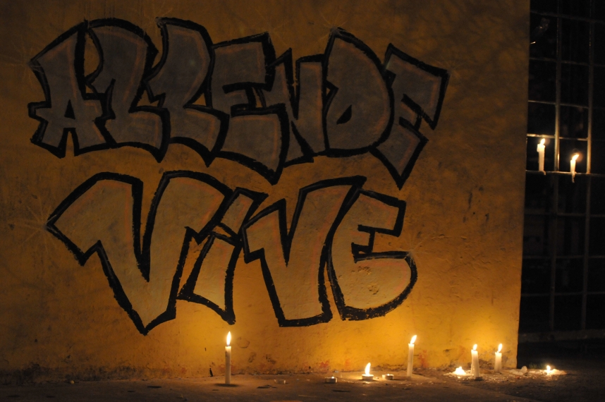 Von weitem schon sind die Kerzen zu erkennen. Unzählige säumen die Mauern um das Estadio Nacional. An den Mauern sind Portraits des einstigen Präsidenten der Republik, Salvador Allende, angebracht. Neben ihm der Konterfei von Victor Jara, ein beliebter Liedermacher Chiles und eines der berühmtesten und bekanntesten Opfer der Diktatur. Die Menschen schauen sich die Fotos eingehend an, gehen fast auf Tuchfühlung mit ihnen. Lange verweilen sie bevor sie schweigsam weiterziehen. Einige von ihnen befestigen Rosen oder zünden eine Kerze an. Während der Diktatur war das Stadion eines der ersten Internierungs- und Folterlager. Zu Tausenden wurden Regimegegner_innen hier hineingepfercht und unter der Aufsicht von Soldaten zu Verhören in die darunter liegenden Kammern gebracht. Der brutalen Folter sollten nicht wenige zum Opfer fallen. Heute stellt es eines der bedeutendsten Orte der Erinnerung dar.