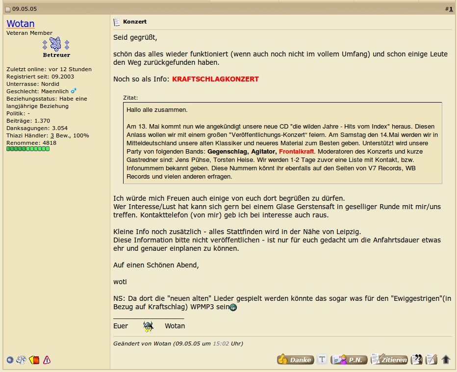 Timo Ehinger macht als Moderator „Wotan“ Werbung für „Kraftschlag“ im internen Bereich von thiazi.net