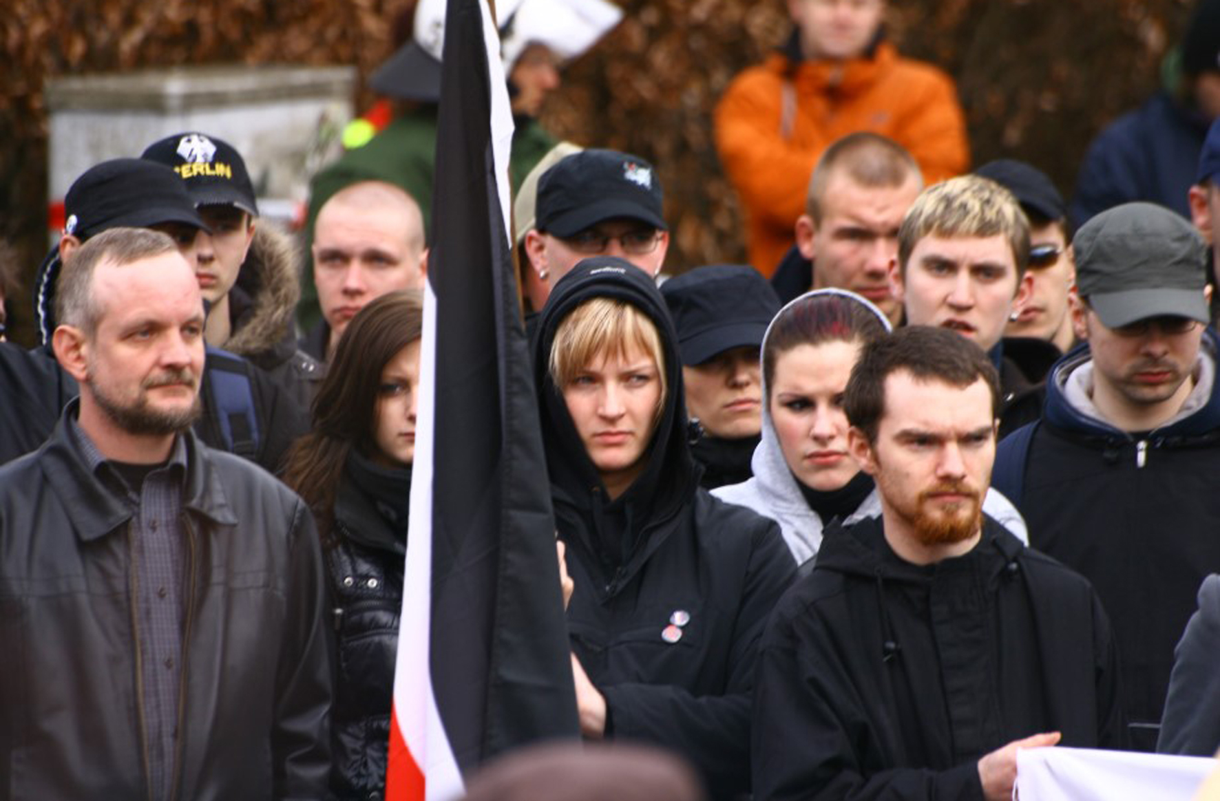"Trauermarsch" der rechten Szene am 28.3.2009 in Lübeck - Fiedler (2.v.r.)
