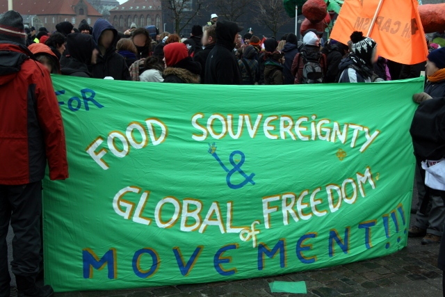 Der Resistance is Ripe Agriculture Protest begann heute um 12 Uhr und zog durch die Innenstadt Kopenhagens unter dem Banner "Food Climate Justice, not Climate Change" [Fotos][Video]. Hunderte versammelten sich vor eine Netto Supermarkt um den Reden über Nahrungssouveränität und dessen Verbindung zum Klimawandel und der Ausbeutung von Menschen zu hören.