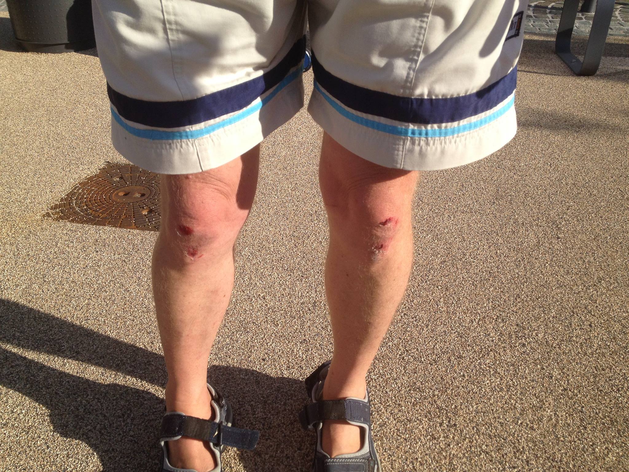 Von Antifaschisten in Saarbrücken "brutal ins Krankenhaus geprügelter schwerbehinterter" Sagesa-Aktivist mit den bleibenden Folgen des Angriffs. (03.08.2015)