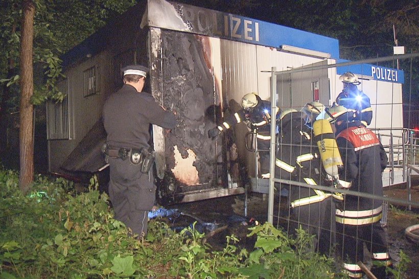 Die Polizei sucht jetzt nach den Tätern (anmerkung für linksunten: unter dem container??)
