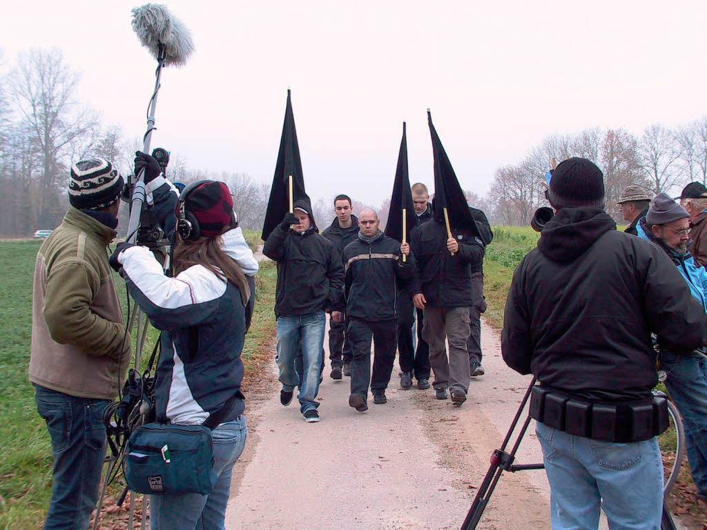 NPD-Anhänger im Jahr 2007 auf dem Weg zur Kundgebung am Panzergraben.