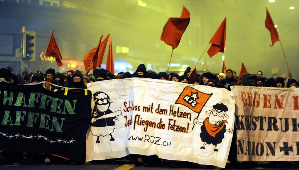 Die Demonstranten zogen ungehindert vom Helvetiaplatz durch die Innenstadt bis zum Bellevue, dort wendeten sie.