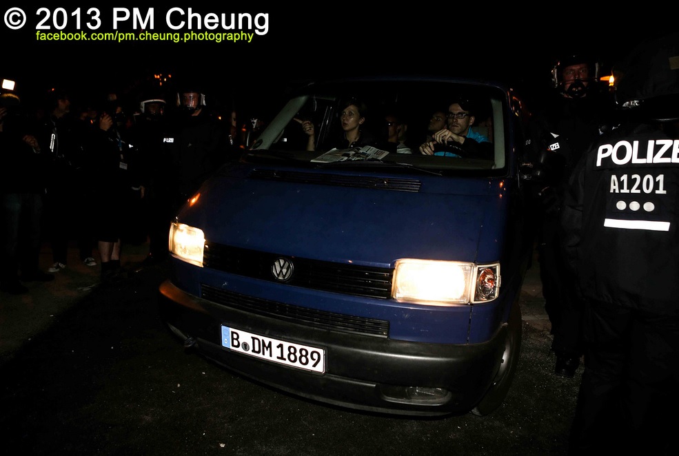 Mike Turau am Steuer des NPD-Lautsprecherwagens, auf dem Beifahrersitz: RNF-Vorsitzende Maria Fank, Hellersdorf, 20. August 2013