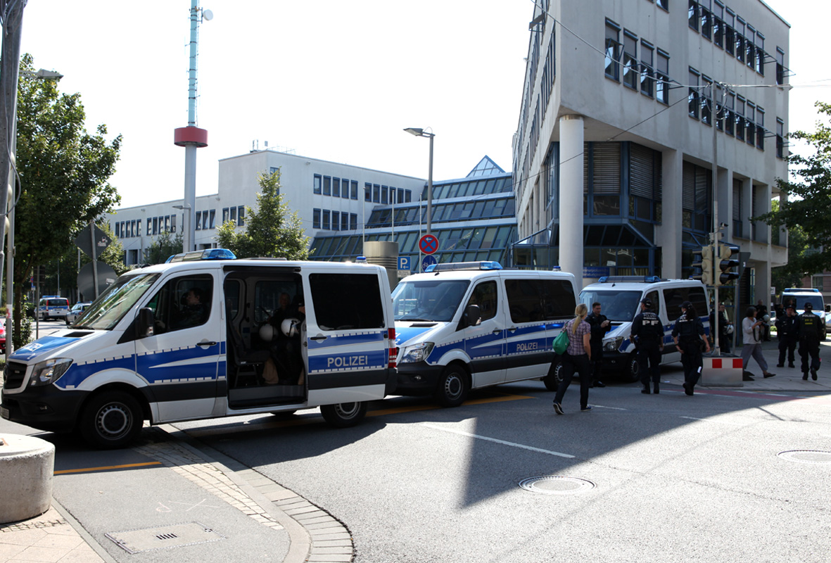"Wir sind hier nur zum Schutz." Polizeizentrale in der Römerstraß