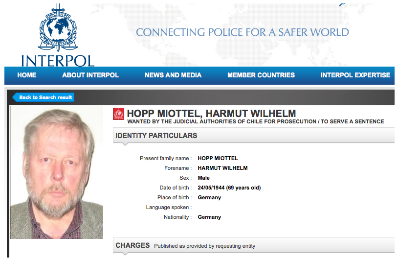Hartmut Hopp, wohnhaft in Krefeld, wird wegen seiner Verbrechen in der Colonia Dignidad von Interpol gesucht.