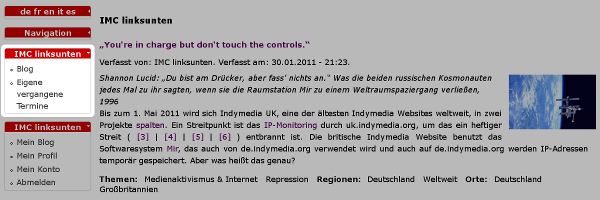 Screenshot des Blogs von IMC linksunten