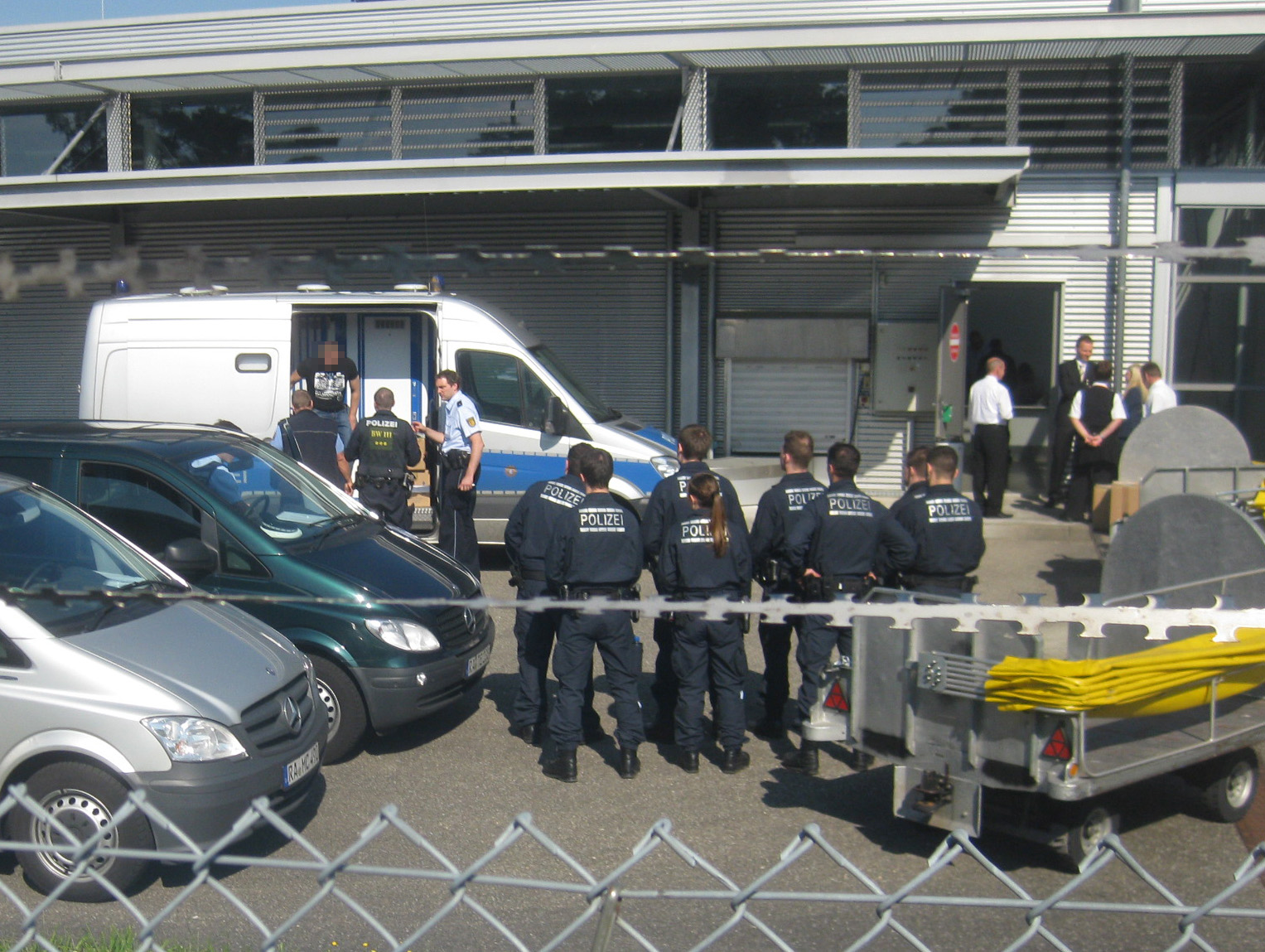 Ein Mensch wird aus einer Einzelzelle zum Check-in geführt