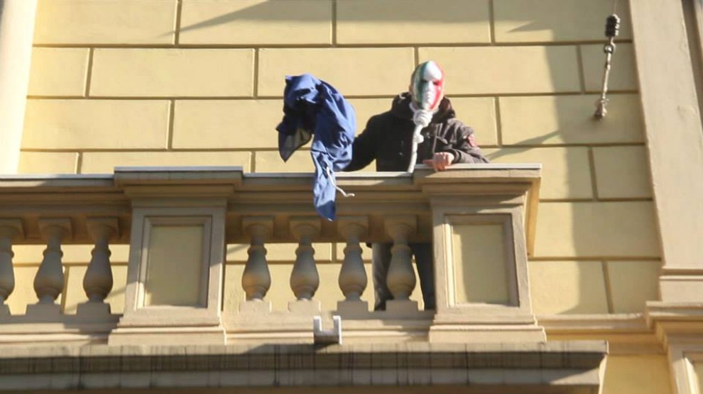Simone di Stefano auf dem Balkon der EU-Kommission am 14.12.2013