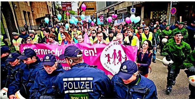 Vom Marktplatz kommt die Demo noch ohne Hindernisse los. Kurz darauf wird sie durch eine Blockade gestoppt. Foto: Heinz Heiss