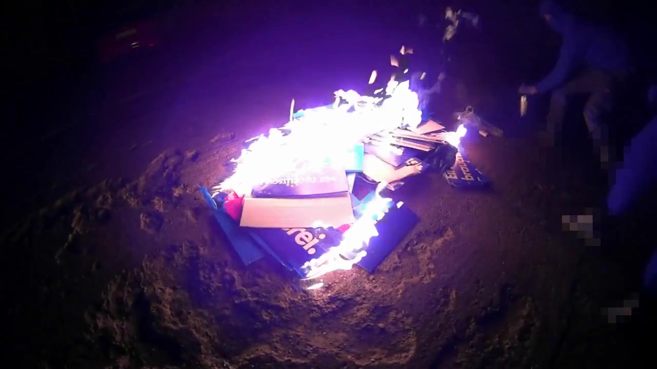 Brennende AfD-Plakate vor ihrem Veranstaltungsort in Berlin-Pankow