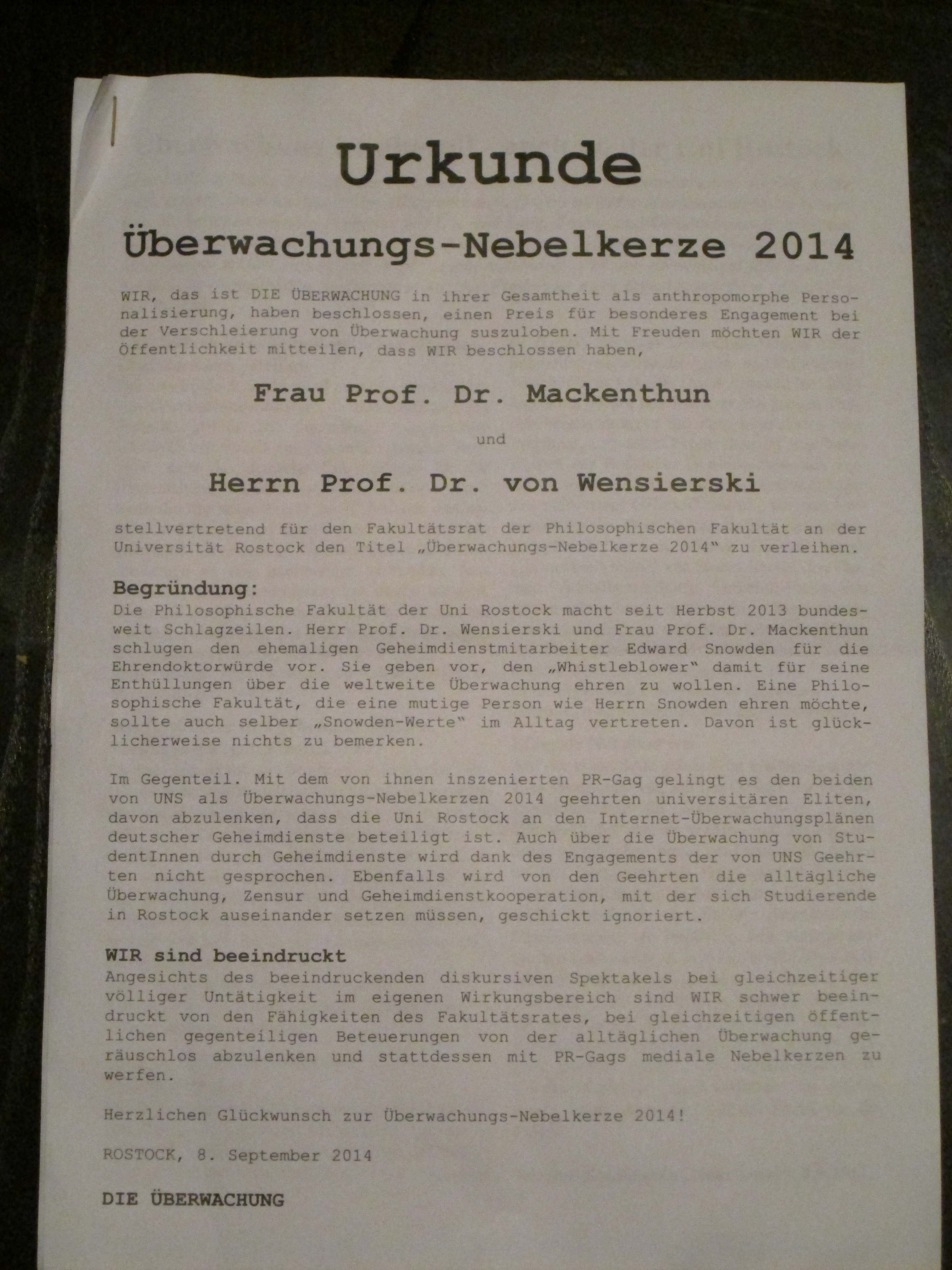 Urkunde, Überwachung bei Snowden-Lesung - 3