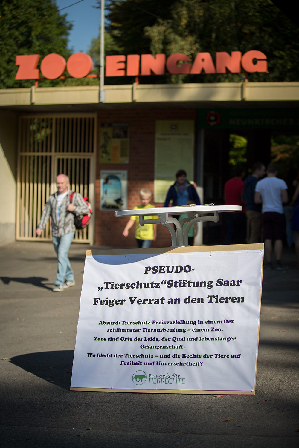 Mahnwache vor dem Neunkircher Zoo.