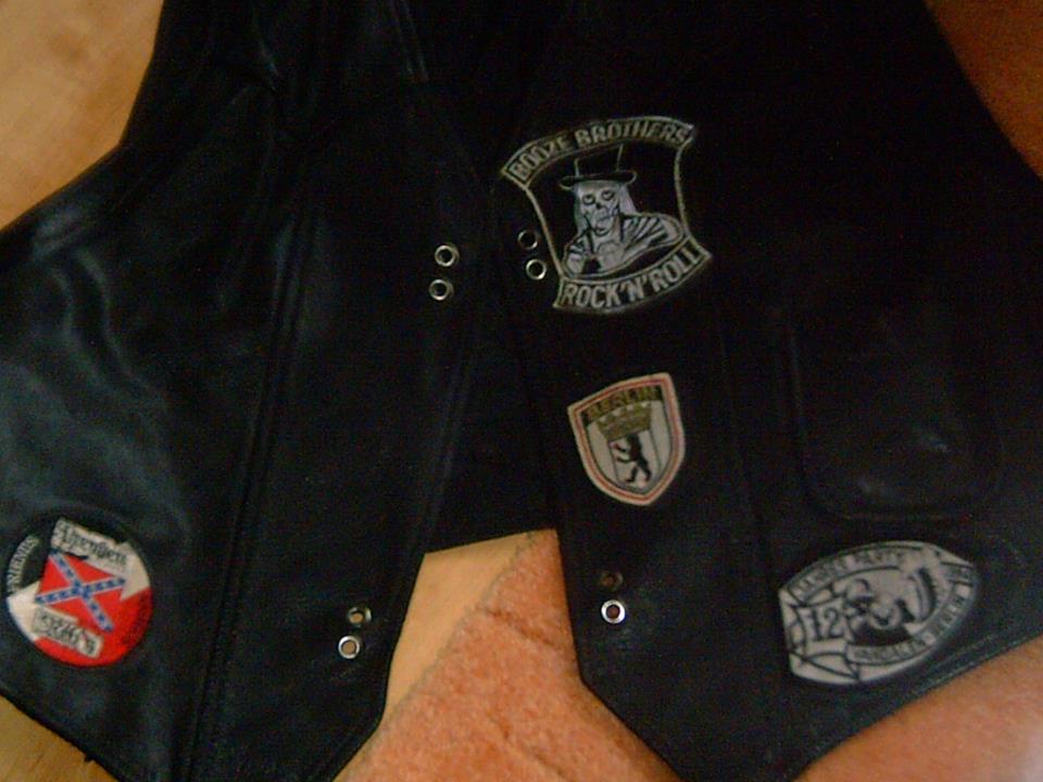 Kutte des "Bierbar 160"-Gastes Thomas Richter, mit "12 Jahre Vandalen Party"-Aufnäher