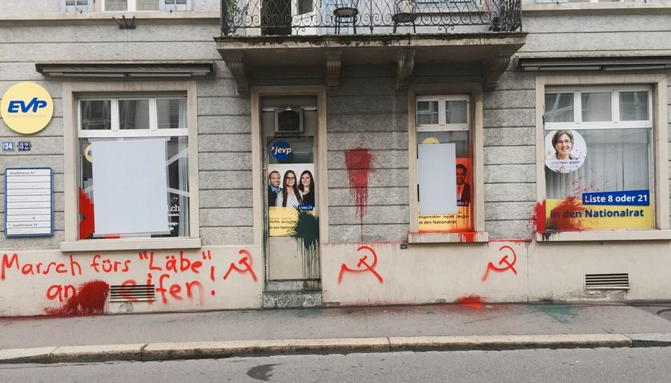 Auf das EVP-Sekretariat in Zürich wurde in der Nacht auf heute ein Farbanschlag verübt.Quelle: EVP Kanton Zürich