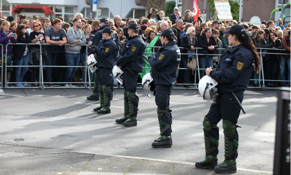 Ein massives Polizeiaufgebot sicherte die Nazi-Kundgebung sowie An- und Abreise der FaschistInnen.