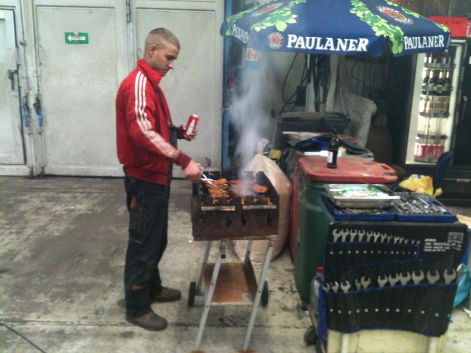 Tim Borowski in der Selbsthilferwerkstatt am Grill