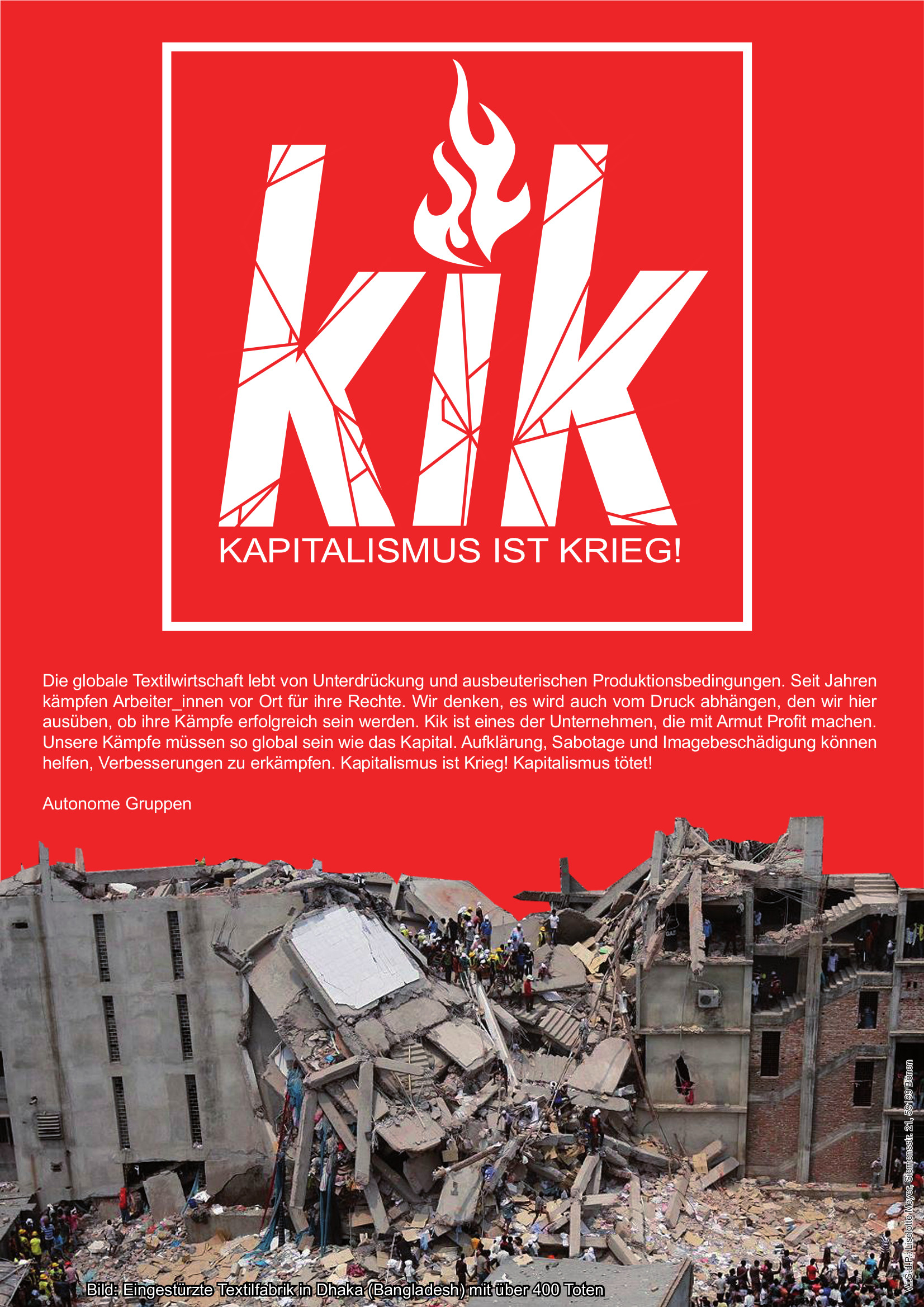 Plakat: kik - Kapitalismus ist Krieg