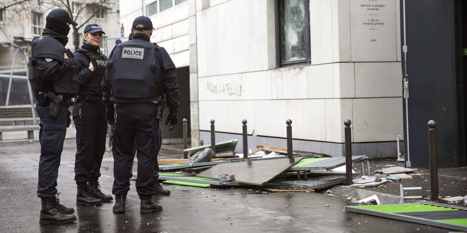 Die Angreifer rissen Absperrungen ein und beschmierten die Fassaden der Gebäude Foto: dpa