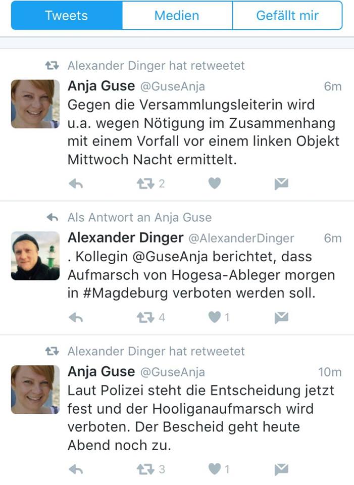 (Fake-)Volksstimme-Redakteur/in verkünden angebliches Verbot der GSD-Veranstaltung am 08.04.2016 (Screenshot)