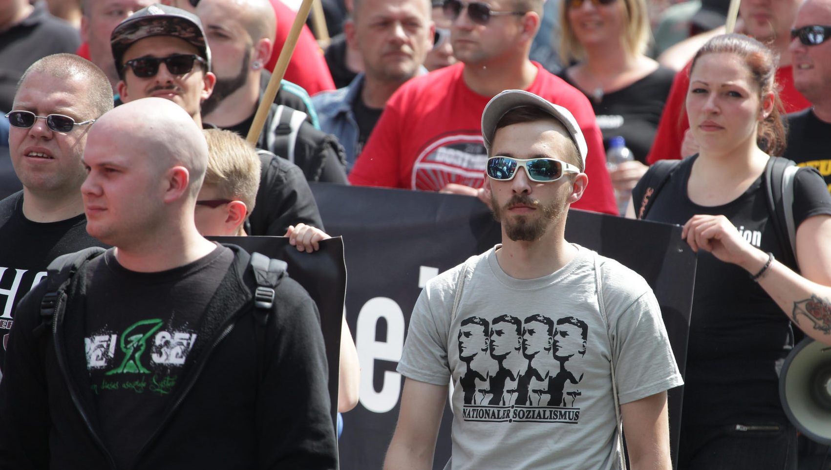 Denny Hilprecht, Links im Bild, ehemaliger Nazikader der GND (Gemeinschaft Nationales Deutschland), Nazi Demo Dortmund, 04.06.2016