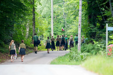 Ungdomar och barn i Sturmvogels uniform vandrar med organisationens svart/röda fana. (Foto Tor Gasslander och Peo Möller)