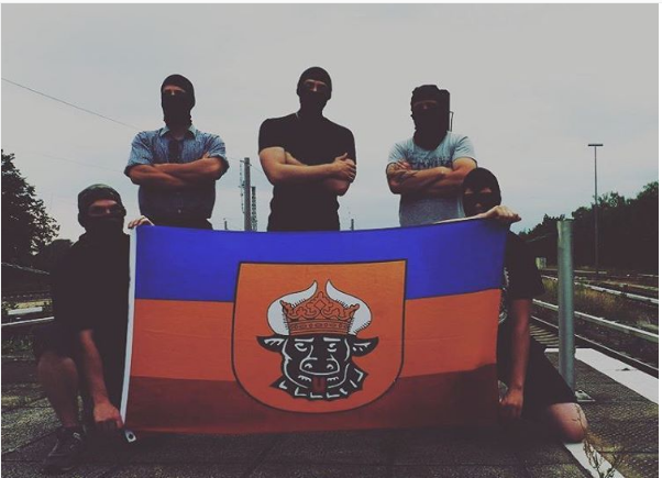 Nach der missglückten "Kiez-Schulung" posiert Patrick Kruse mit Rostocker Neonazis