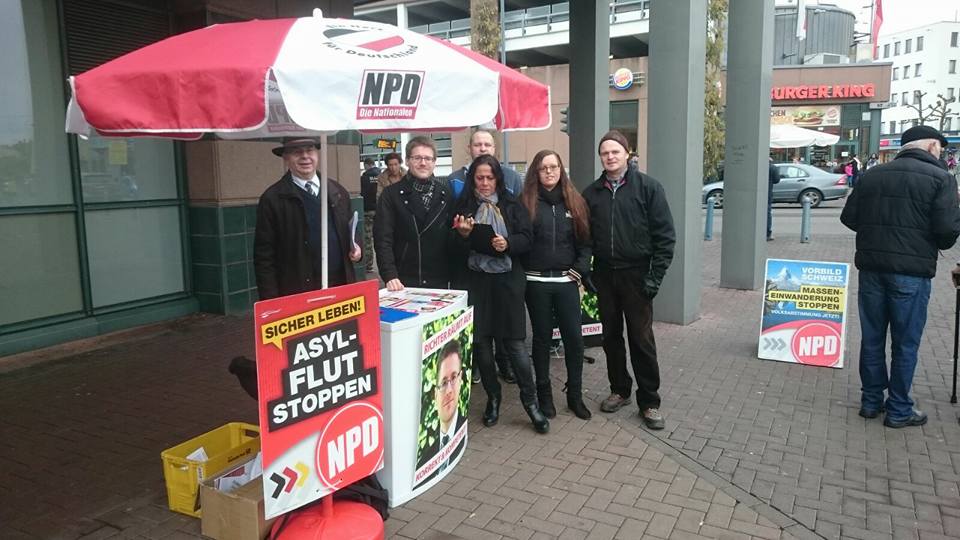 Unterschriftensammlung der NPD am 12. Dezember 2016 in Neunkirchen mit Peter Marx, Peter Richter, Jacqueline Süßdorf, Sascha Wagner, Laura Müller und Klaus Nuhn.