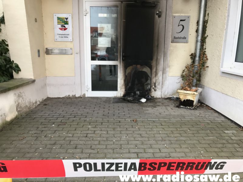 Die beschädigte Sicherheitstür der Staatsanwaltschaft Dessau.