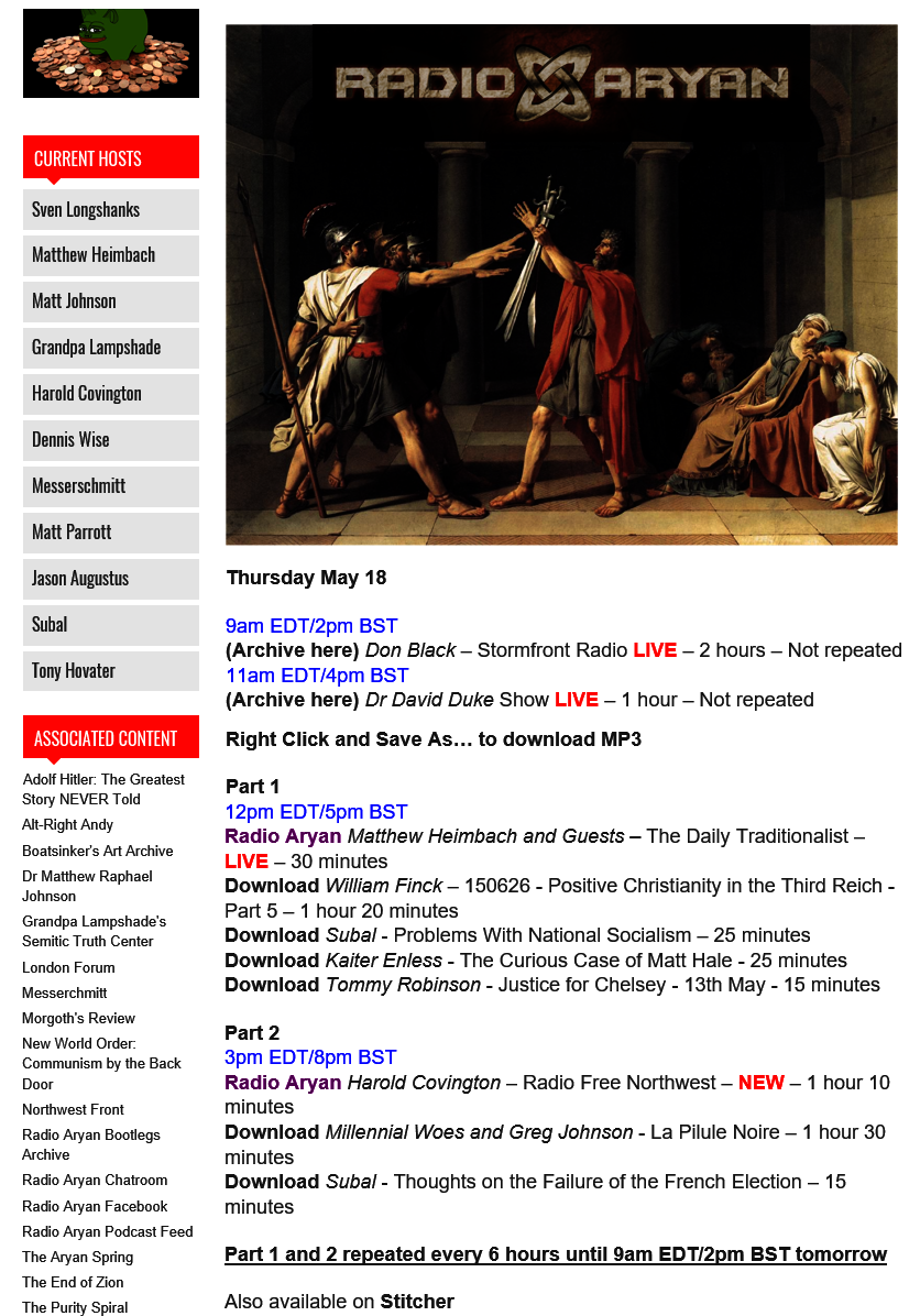 Tommy's first live interview for Radio Aryan, the online neo-nazi radio station.