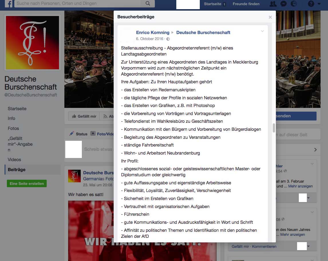 Enrico Komning: Stellenanzeige auf rechter Burschenseite. Screenshot