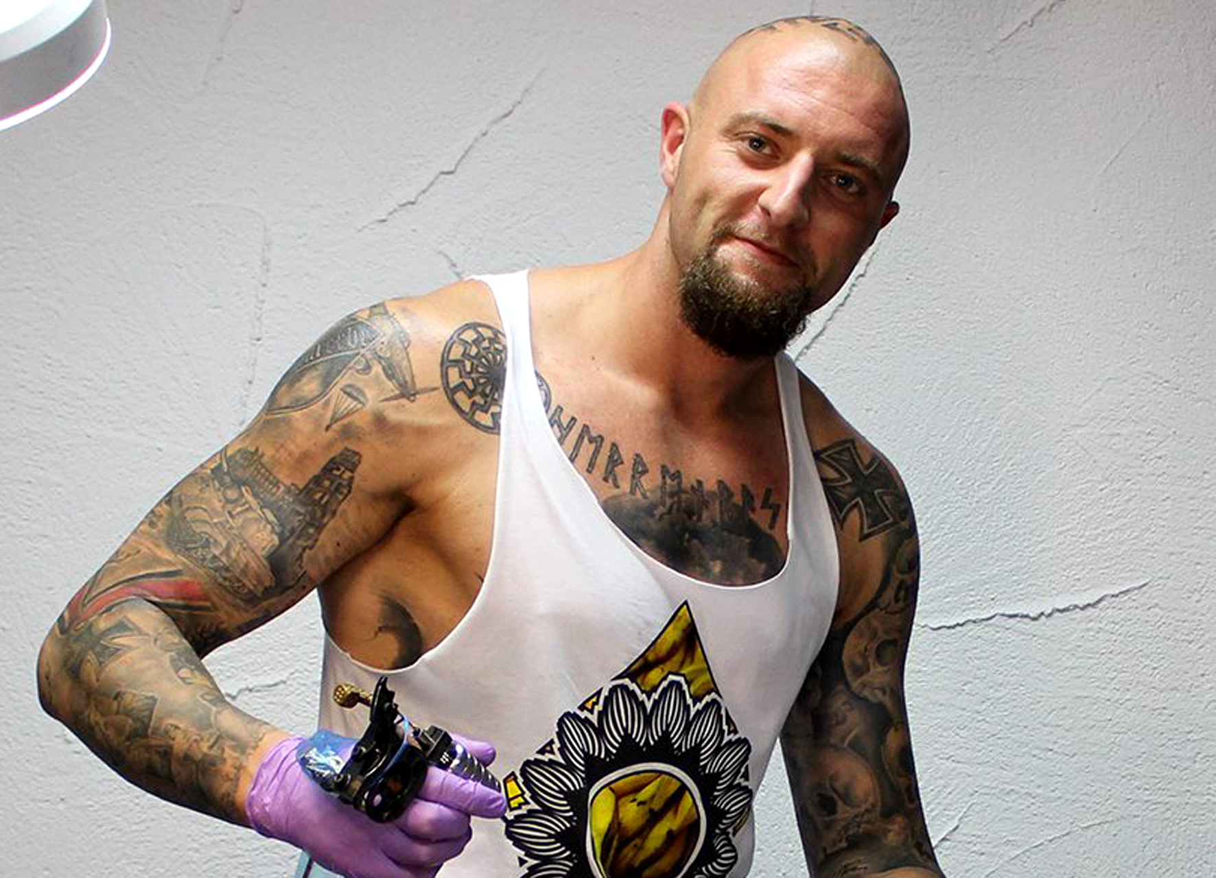 Der "Hammerskin" und Tätowierer Marco Berlinghof mischte am 9. Juni auch lautstark mit.
