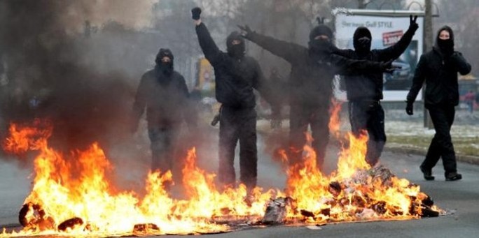 Fürchtet die Polizei auch in Kreuzberg: Autonome im Februar in Dresden. Foto: dpa