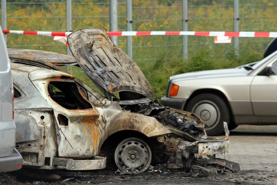 Eines der ausgebrannten Autos an der Schlenzigstraße in Hamburg-Wilhelmsburg © Andr Zand-Vakili
