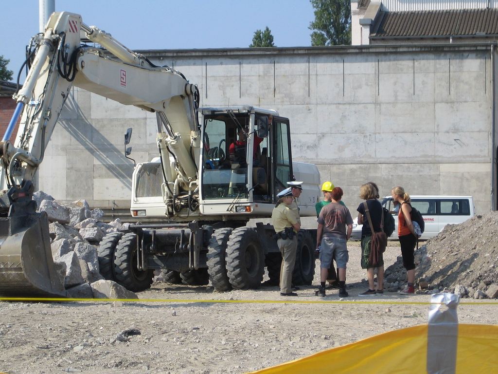 Kleine Unterhaltung mit dem Baggerfahrer. Sein Job: "tun als ob"
