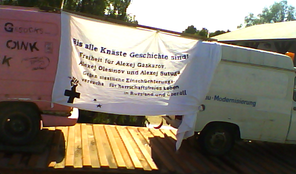 "Bis alle Knäste Geschichte sind - Freiheit für Alexej Gaskarov, Alexej Olesinov und Alexej Sutuga. Gegen staatliche Einschüchterungsversuche für ein herrschaftsfreies Leben in Russland und überall