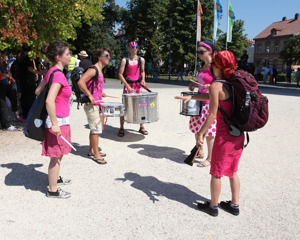 Sambartistas sorgten für Stimmung gegen die NPD.